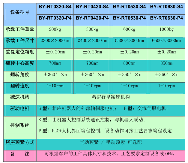 BY-RT XXXX-S(P)4系列 焊接机器人外部轴-- 头尾架式自动翻转变位机